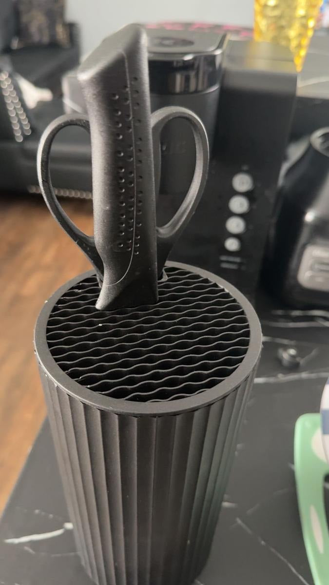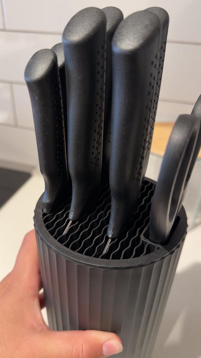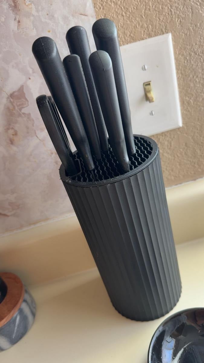 Absolutely. The vertical slot design keeps every knife separated to prevent dulling or accidental cuts. It’s made from durable materials that stay stable on your countertop — no tipping, wobbling, or slipping.