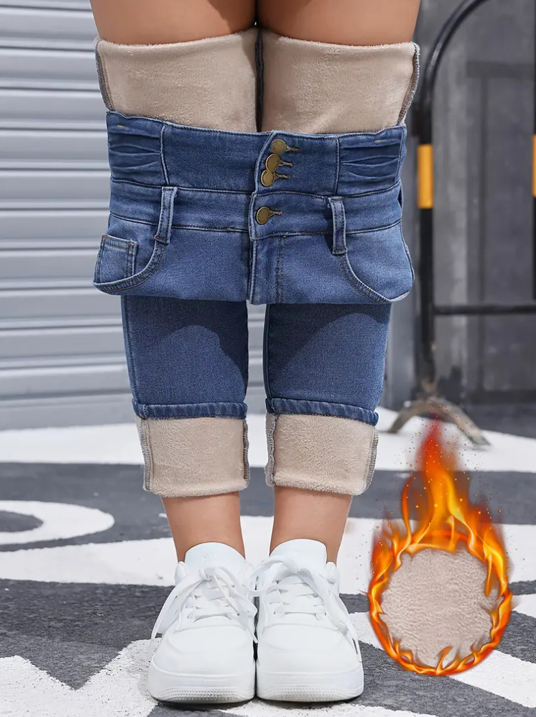 Designed with a geometric, body-contouring fit, these jeans sculpt your legs and enhance your natural shape — all while keeping you warm with a plush fleece lining. It’s the perfect balance of cozy comfort and effortless style that makes you look and feel amazing, every time you wear them.